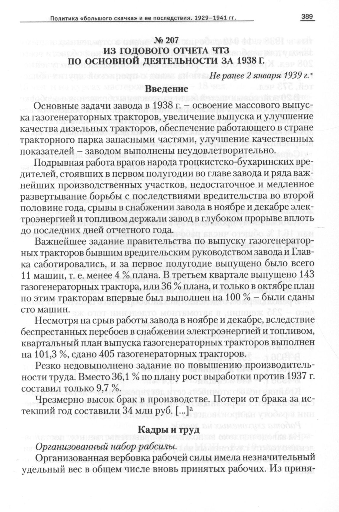 Из годового отчета ЧТЗ по основной деятельности за 1938 г., Не ранее 2 января 1939 г. // ОГАЧО, Ф. Р-792, Оп. 5, Д. 1309, Л. 1-2, 71-75,101. Подлинник.