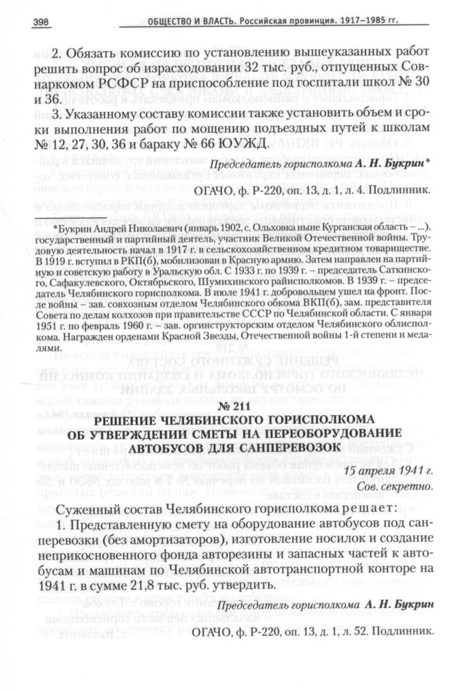Общество и власть. Российская провинция. 1917-1985: Документы и материалы в 6 т. Челябинская область. Т. 1. 1917-1945. — Челябинск: Книга, 2005.