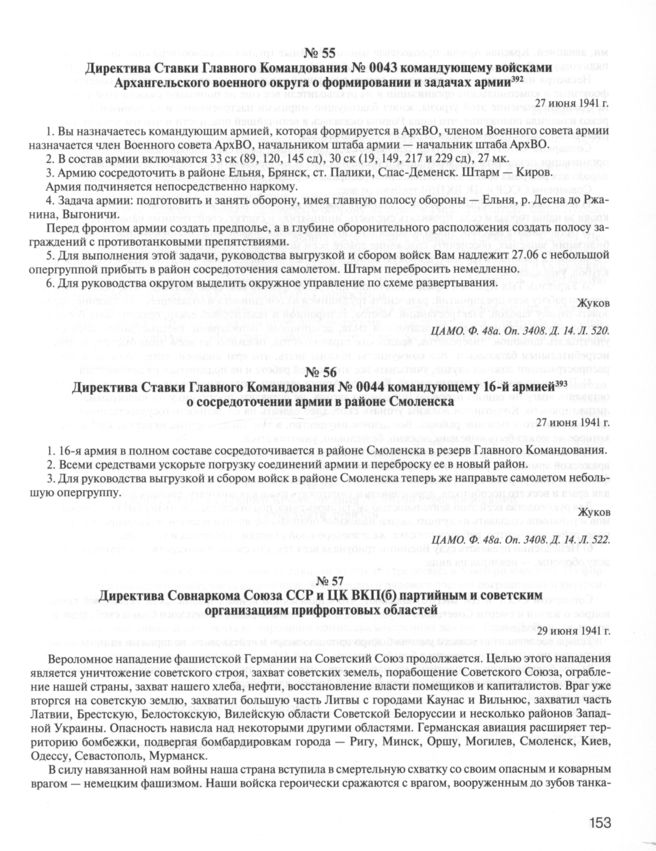 Директива Ставки Главного Командования № 0043 командующему войсками Архангельского военного округа о формировании и задачах армии. 27 июня 1941 г. // ЦАМО. Ф. 48а. Оп. 3408. Д. 14. Л. 520.