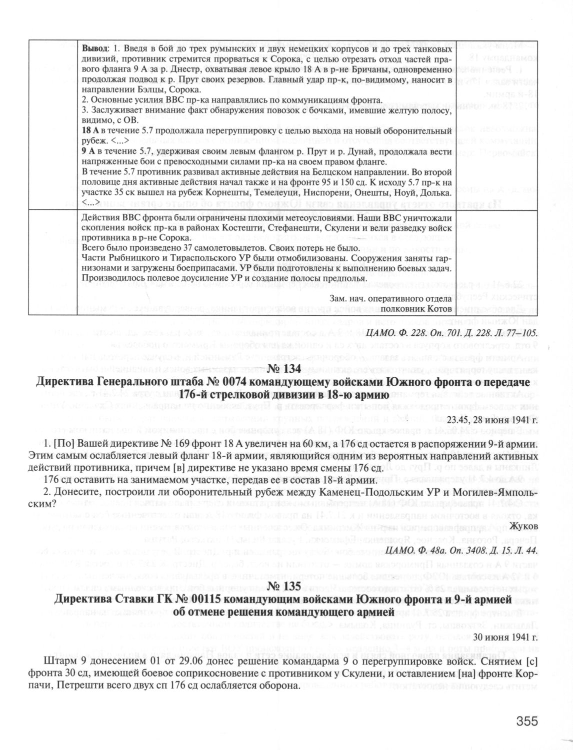Директива Ставки ГК № 00115 командующим войсками Южного фронта и 9-й армией об отмене решения командующего армией. 30 июня 1941 г. // ЦАМО. Ф. 48а. Оп. 3408. Д. 15. Л. 66.