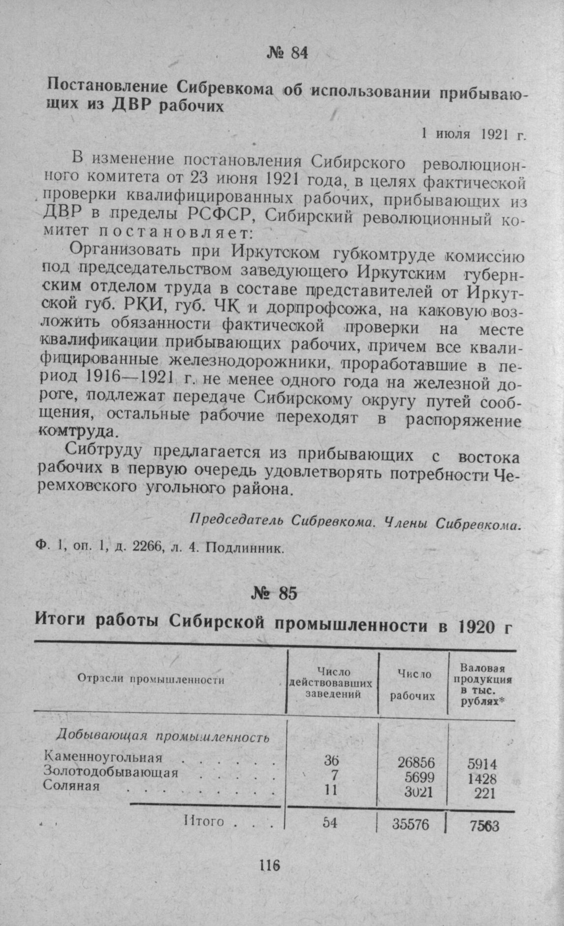 Итоги работы Сибирской промышленности в 1920 году // К вопросу об индустриализации Сибири, изд. Сибкрайсовнархоза, г. Новониколаевск, 1925, стр. 83.