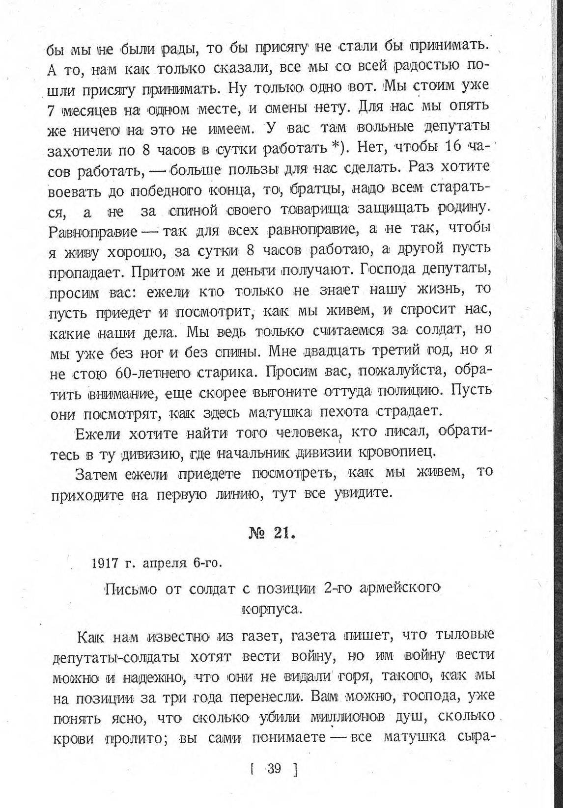 Письмо солдат с позиции 2-го армейского корпуса. 6 апреля 1917 г.