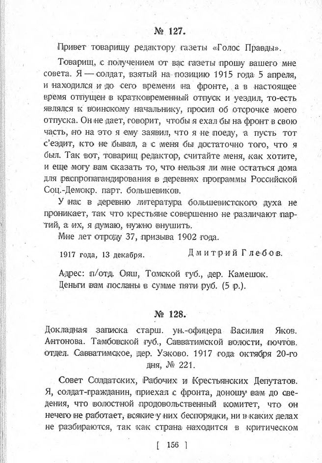 Положение населения в 1917 году -- Солдатские письма, прошения