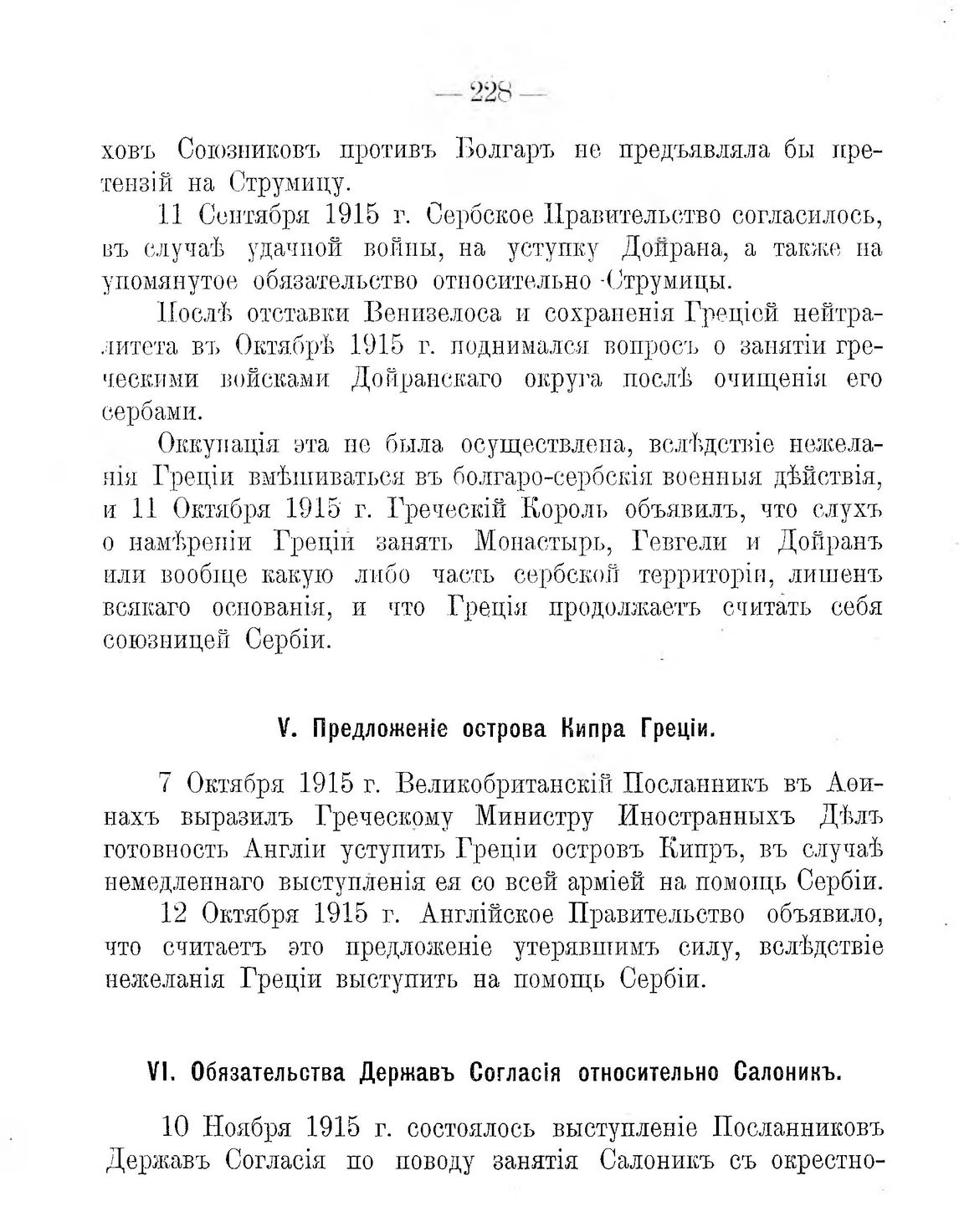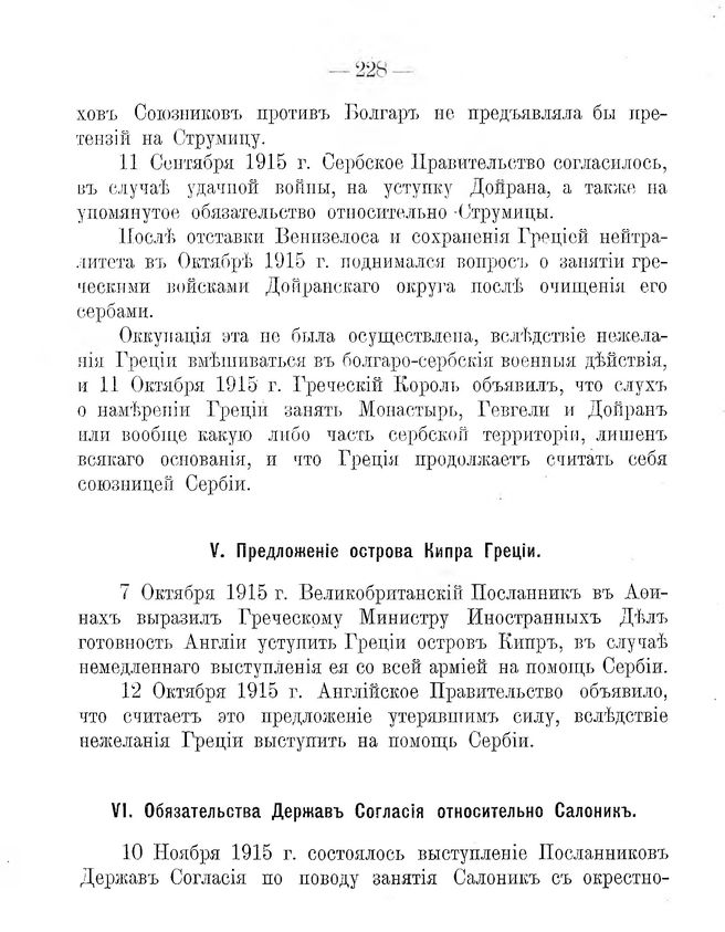 Компенсаціи Греціи. VI. Обязательства Державъ Согласія относительно Салоникъ