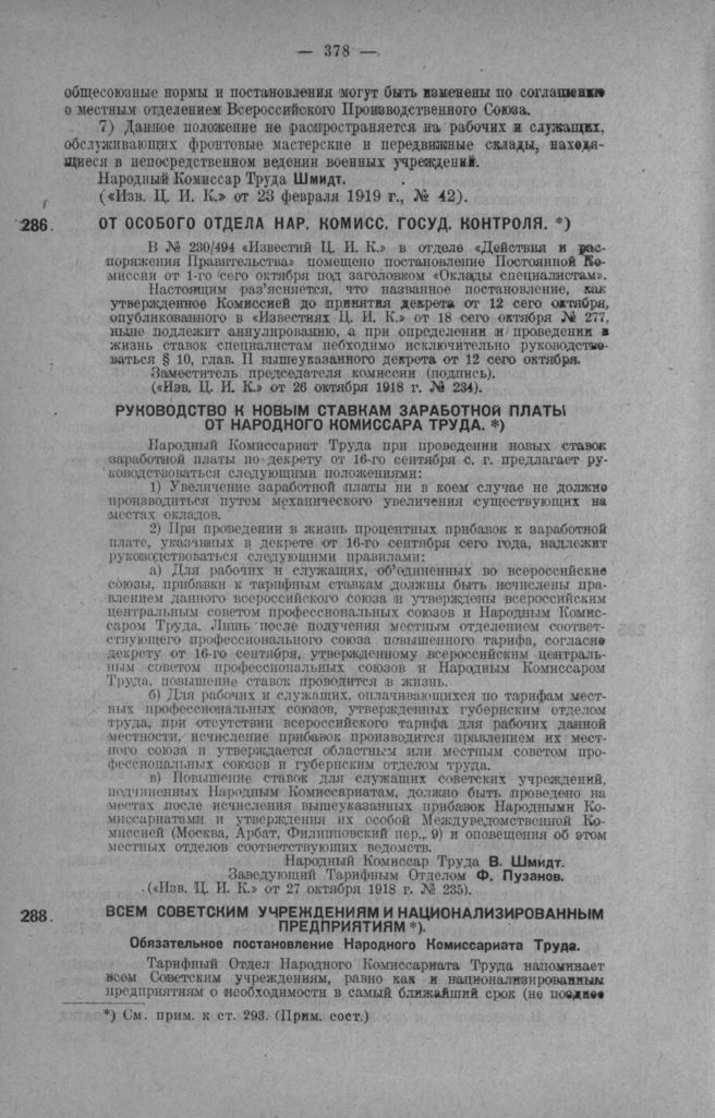 Руководство к новым ставкам заработной платы от Народного комиссара труда // Известия Ц. И. К. от 27 октября 1918 г. № 235.