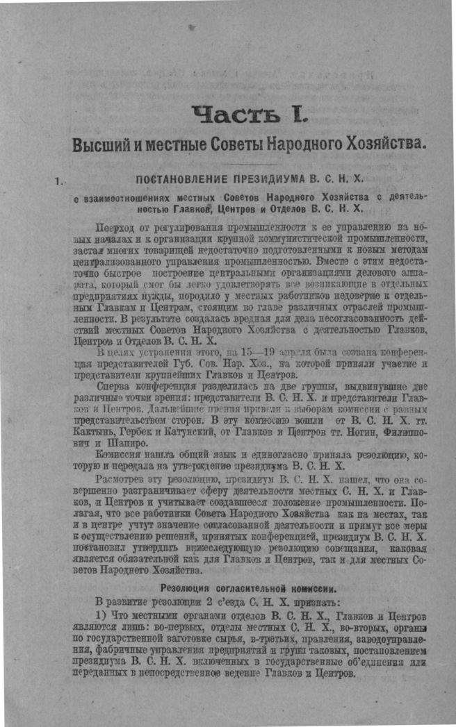 Постановление Президиума ВСНХ о Взаимоотношениях местных Советов Народного Хозяйства с Деятельностью Главков, Центров и Отделов ВСНХ