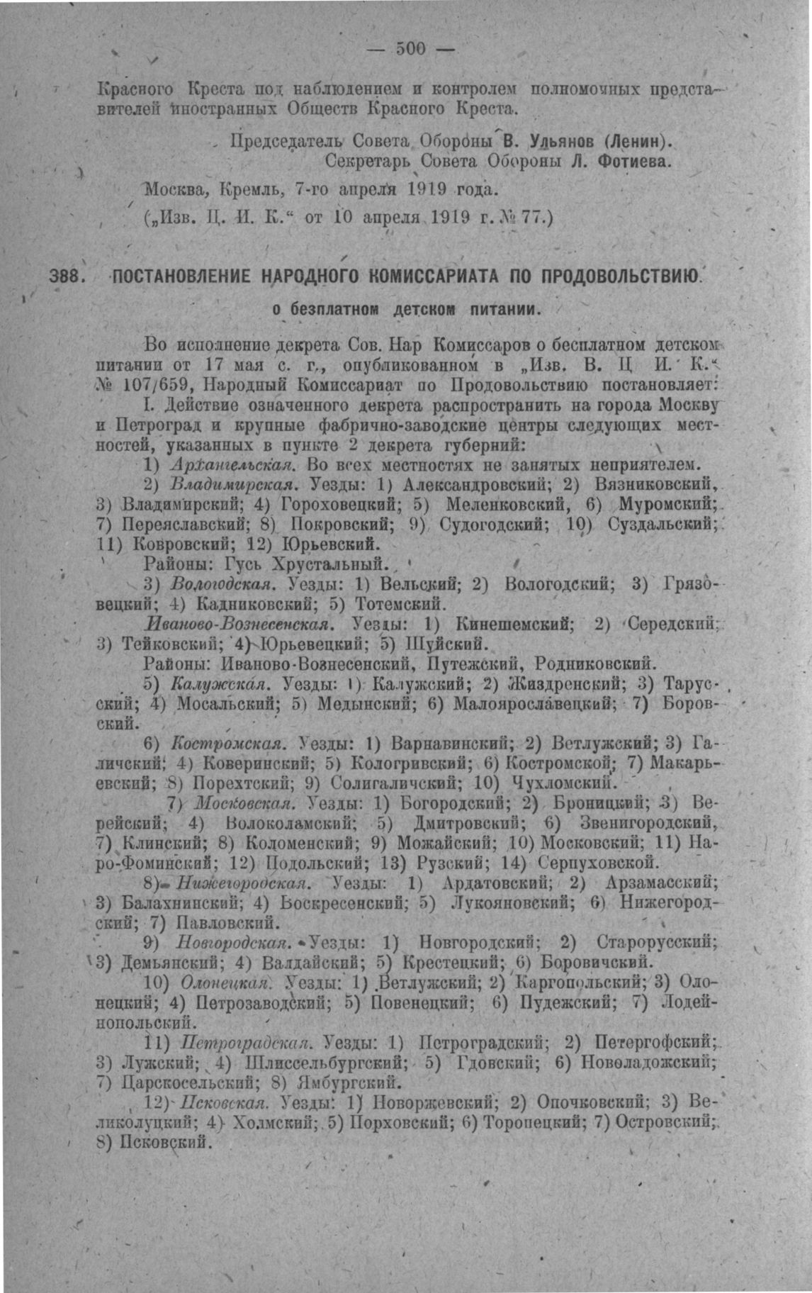 Известия ЦИК от 1 июня 1919 г. № 117.