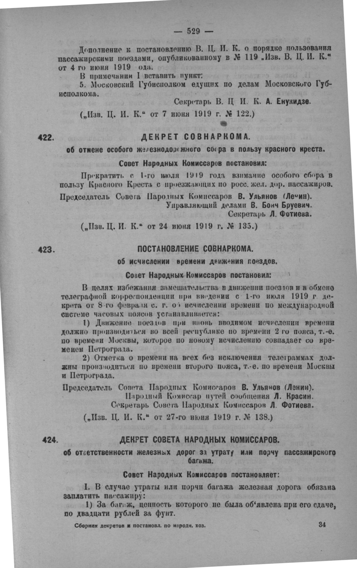 Декрет Совнаркома об отмене особого железнодорожного cбора в пользу Красного Креста // «Изв. Ц. И. К.» от 24 июня 1919 г. № 135.