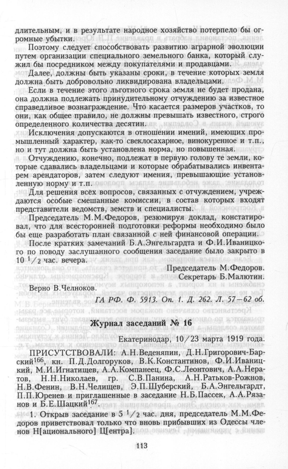 Всероссийский Национальный Центр. Журнал заседаний № 16. Екатеринодар, 10/23 марта 1919 года // ГА РФ. Ф. 5913. Оп. 1. Д. 262. Л. 63-66 об.
