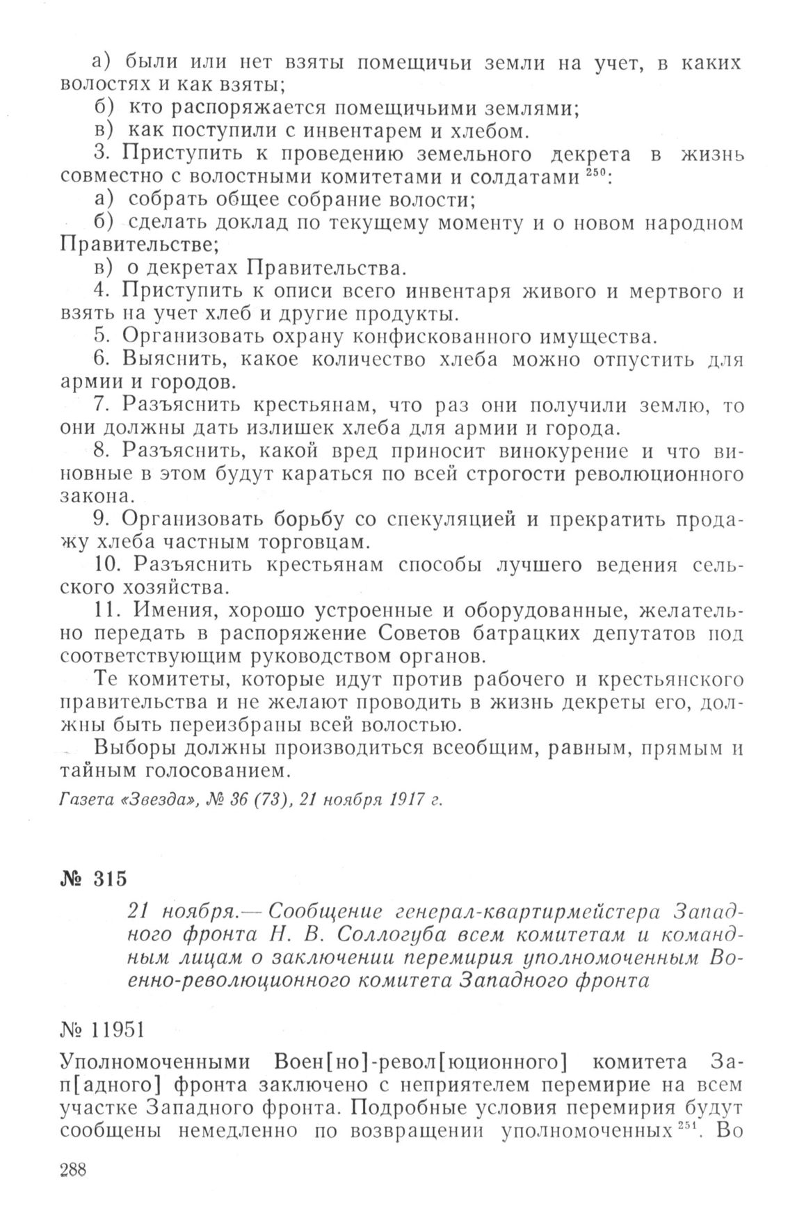 Сообщение генерал-квартирмейстера Западного фронта Н. В. Соллогуба всем комитетам и командным лицам о заключении перемирия уполномоченным Военно-революционного комитета Западного фронта. 21 ноября 1917 г.
