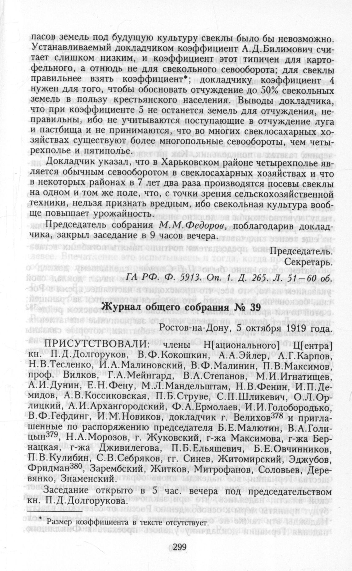 Всероссийский Национальный Центр. Журнал общего собрания № 39. Ростов-на-Дону, 5 октября 1919 года // ГА РФ. Ф. 5913. Оп. 1. Д. 262. Л. 182-187.