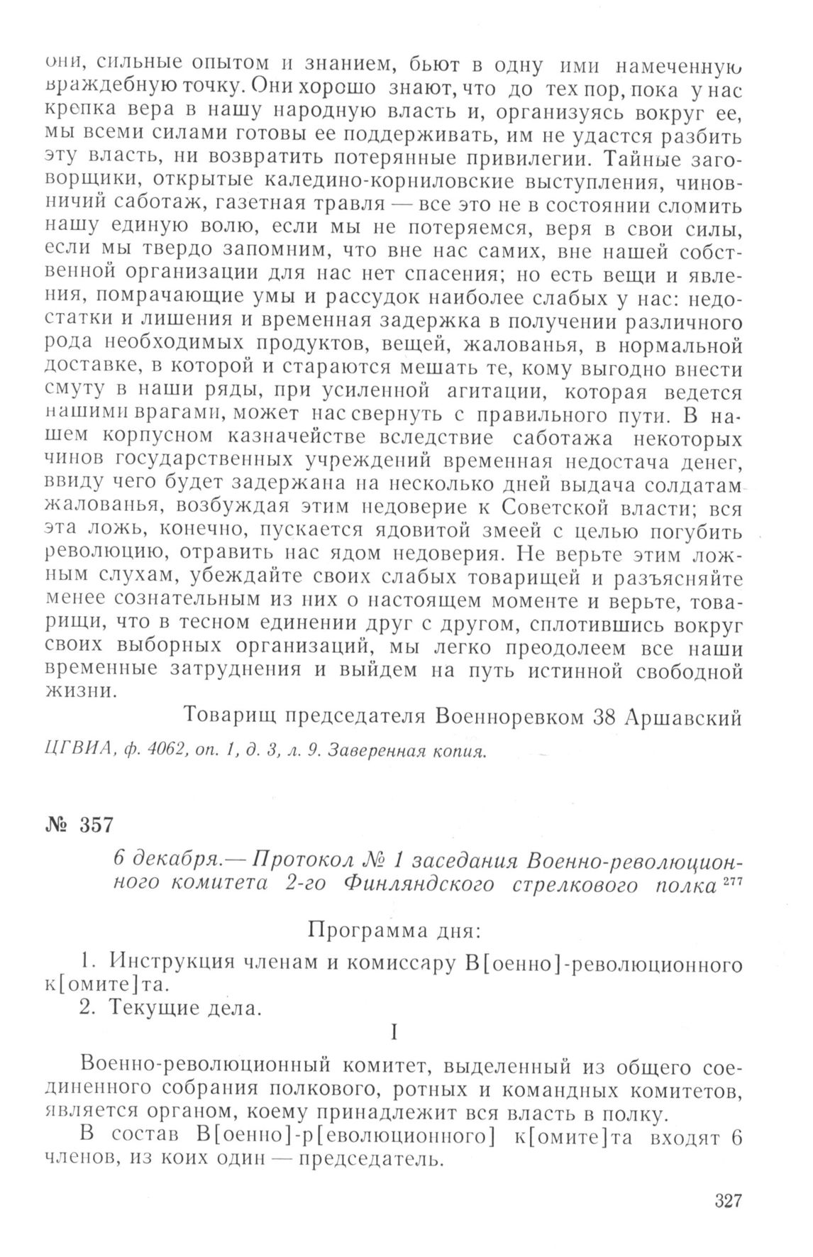 Протокол № 1 заседания Военно-революционного комитета 2-го Финляндского стрелкового полка. 6 декабря 1917 г.