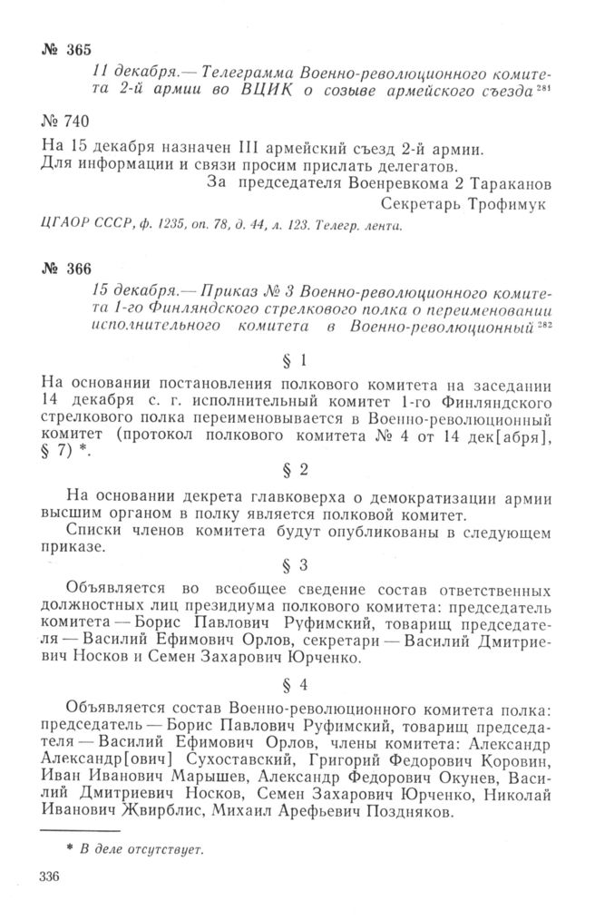 Приказ № 3 Военно-революционного комитета 1-го Финляндского стрелкового полка о переименовании исполнительного комитета в Военно-революционный. 15 декабря 1917 г. // ЦГВИА, ф. 3315, оп. 1, д. 453, лл. 6—7. Подлинник.