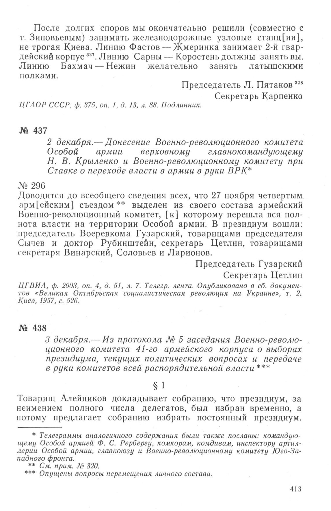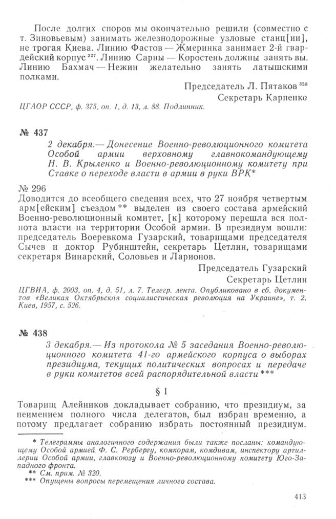 Из протокола № 5 заседания Военно-революционного комитета 41-го армейского корпуса о выборах президиума, текущих политических вопросах и передаче в руки комитетов всей распорядительной власти. 3 декабря 1917 г. // ЦГВИА, ф. 2404, оп. 1, д. 2, л. 249 и об. Подлинник.