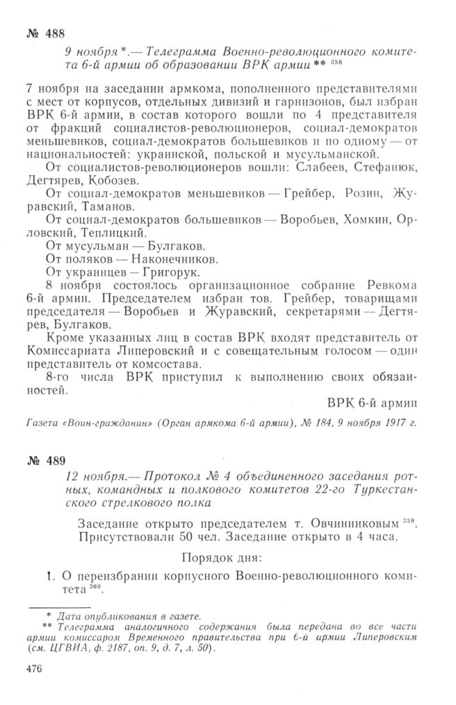 Телеграмма Военно-революционного комитета 6-й армии об образовании ВРК армии. 9 ноября 1917 г. // Газета «Воин-гражданин» (Орган армкома 6-й армии), № 184, 9 ноября 1917 г.