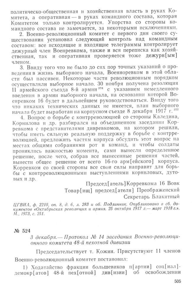 Протокол № 14 заседания Военно-революционного комитета 48-й пехотной дивизии. 3 декабря 1917 г. // ЦГВИА, ф. 3724, оп. 1, д. 41, л. 51. Заверенная копия.