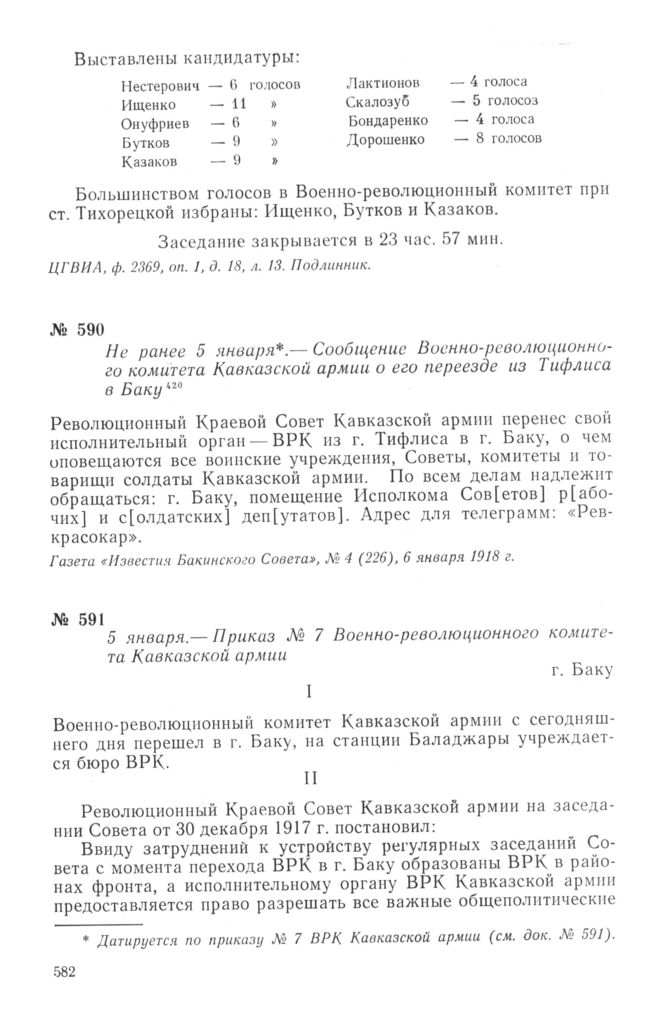 Приказ № 7 Военно-революционного комитета Кавказской армии. 5 января 1918 г. // Газета «Известия Бакинского Совета», № 10 (232), 14 января 1918 г.