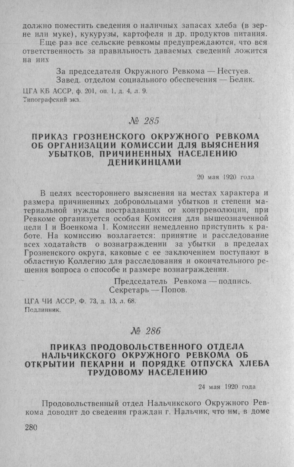 Приказ продовольственного отдела Нальчикского окружного Ревкома об ...