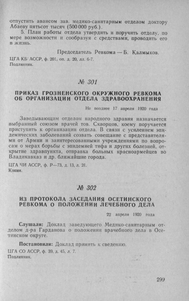 Из протокола заседания Осетинского Ревкома о положении лечебного дела. 22 апреля 1920 года
