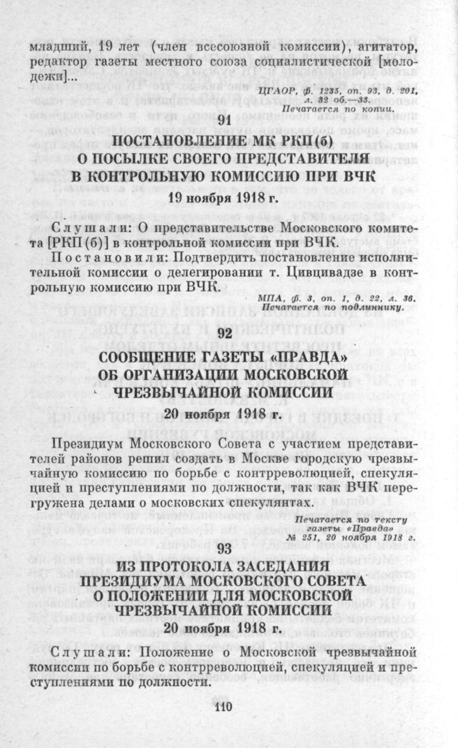 МЧК. Из истории Московской чрезвычайной комиссии: Сб. док. (1918-1921 гг.) — М.: «Моск. рабочий», 1978.