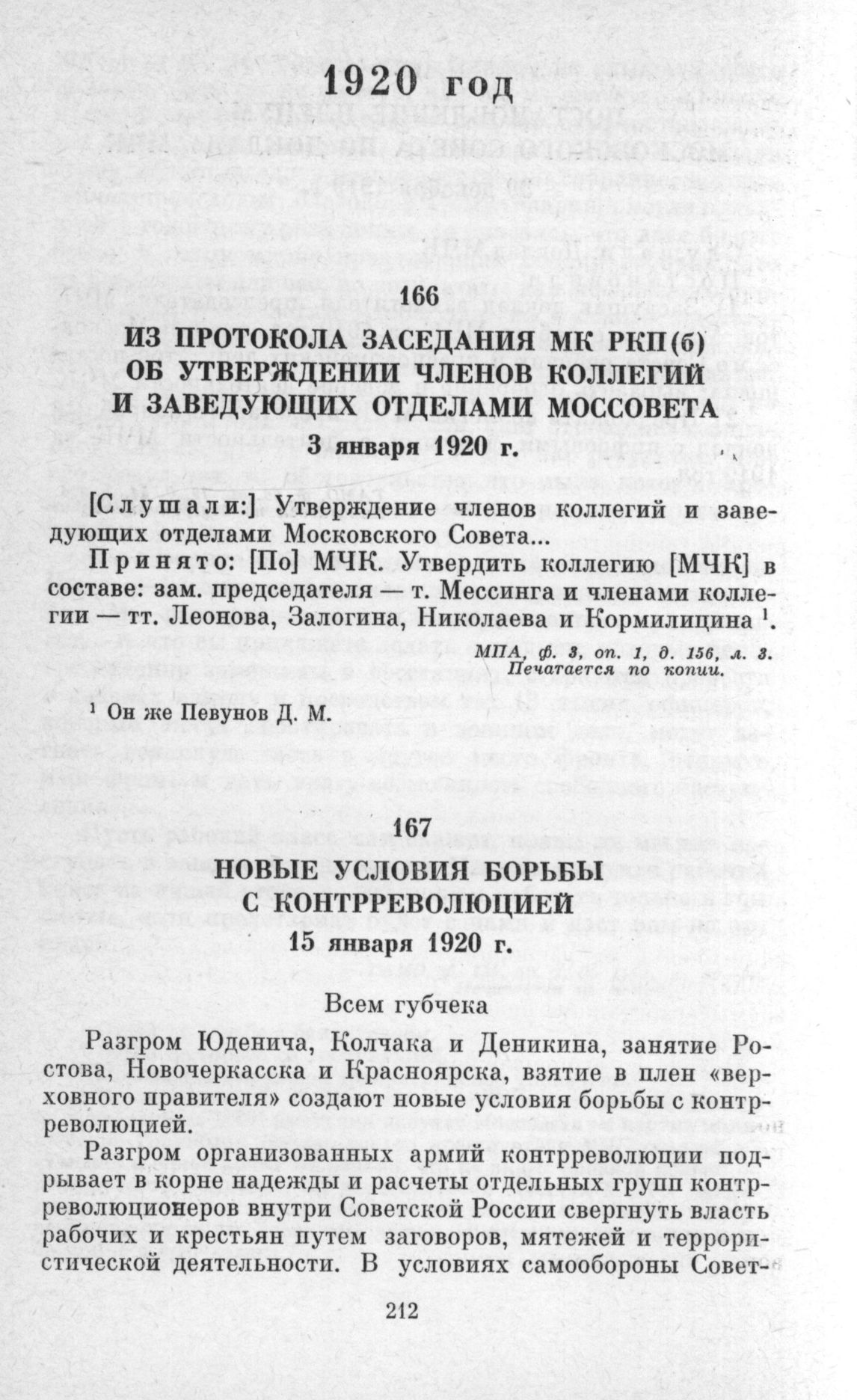 Новые условия борьбы с контрреволюцией. 15 января 1920 г. // Печатается по тексту кн.: Дзержинский Ф. Э. Избранные произведения, изд. 8-е, т. 1, с. 199-200.