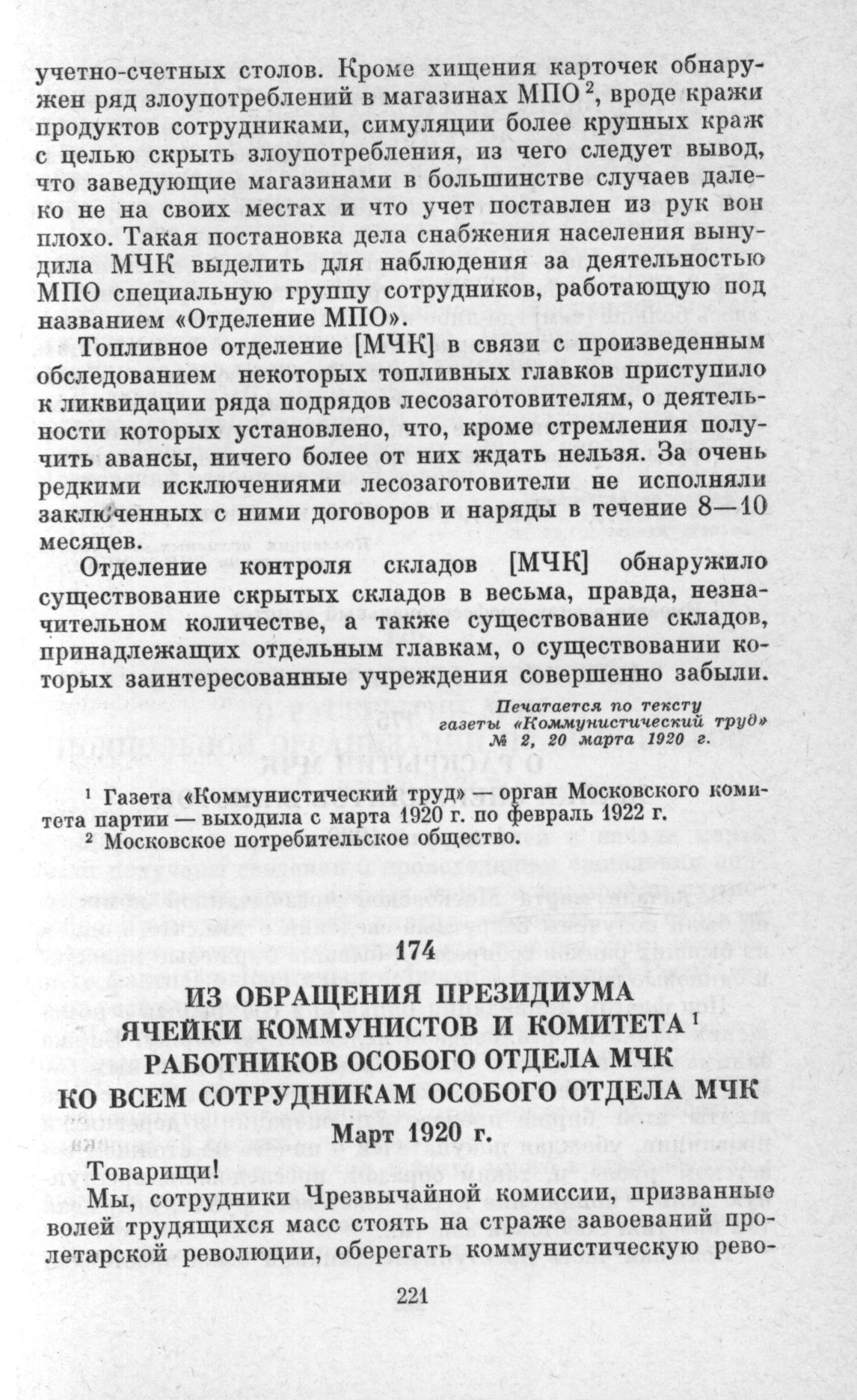 МЧК. Из истории Московской чрезвычайной комиссии: Сб. док. (1918-1921 гг.) — М.: «Моск. рабочий», 1978.