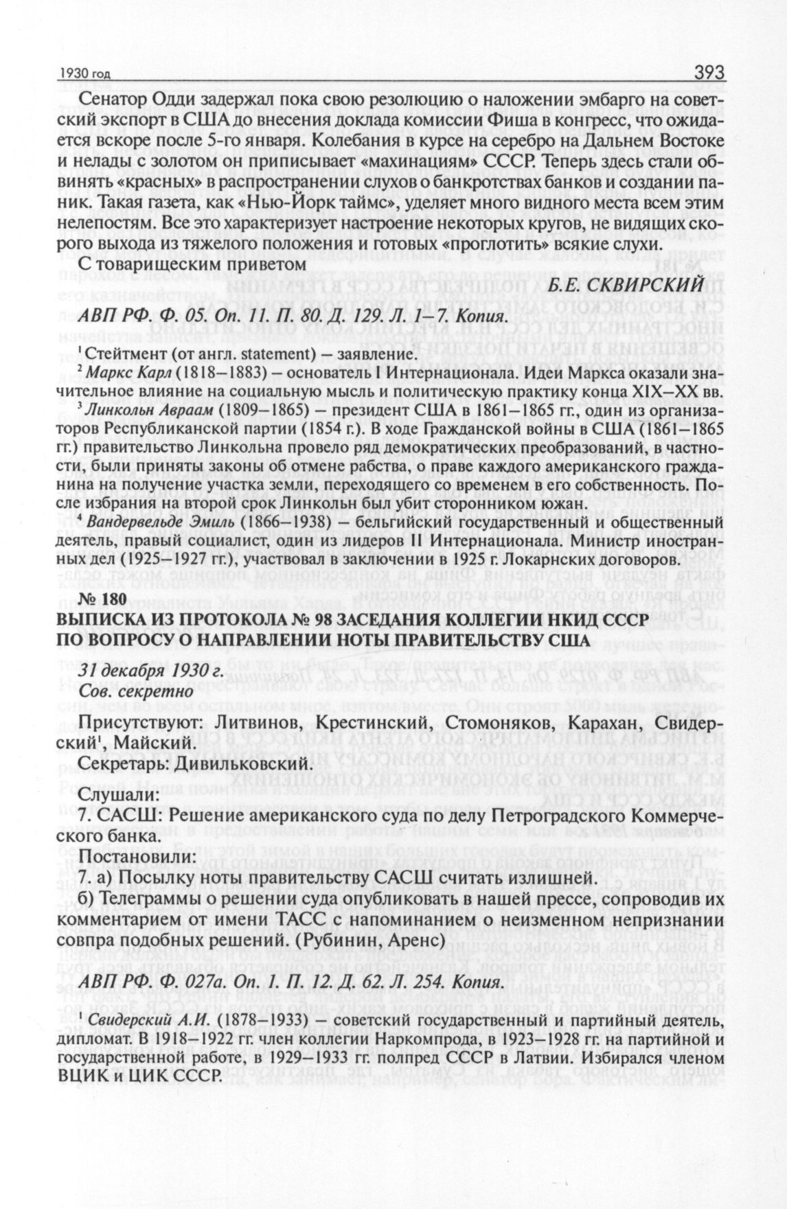 Выписка из протокола № 98 заседания коллегии НКИД СССР по вопросу о направлении ноты правительству США. 31 декабря 1930 г. // АВП РФ. Ф. 027а. Oп. 1. П. 12. Д. 62. Л. 254. Копия.