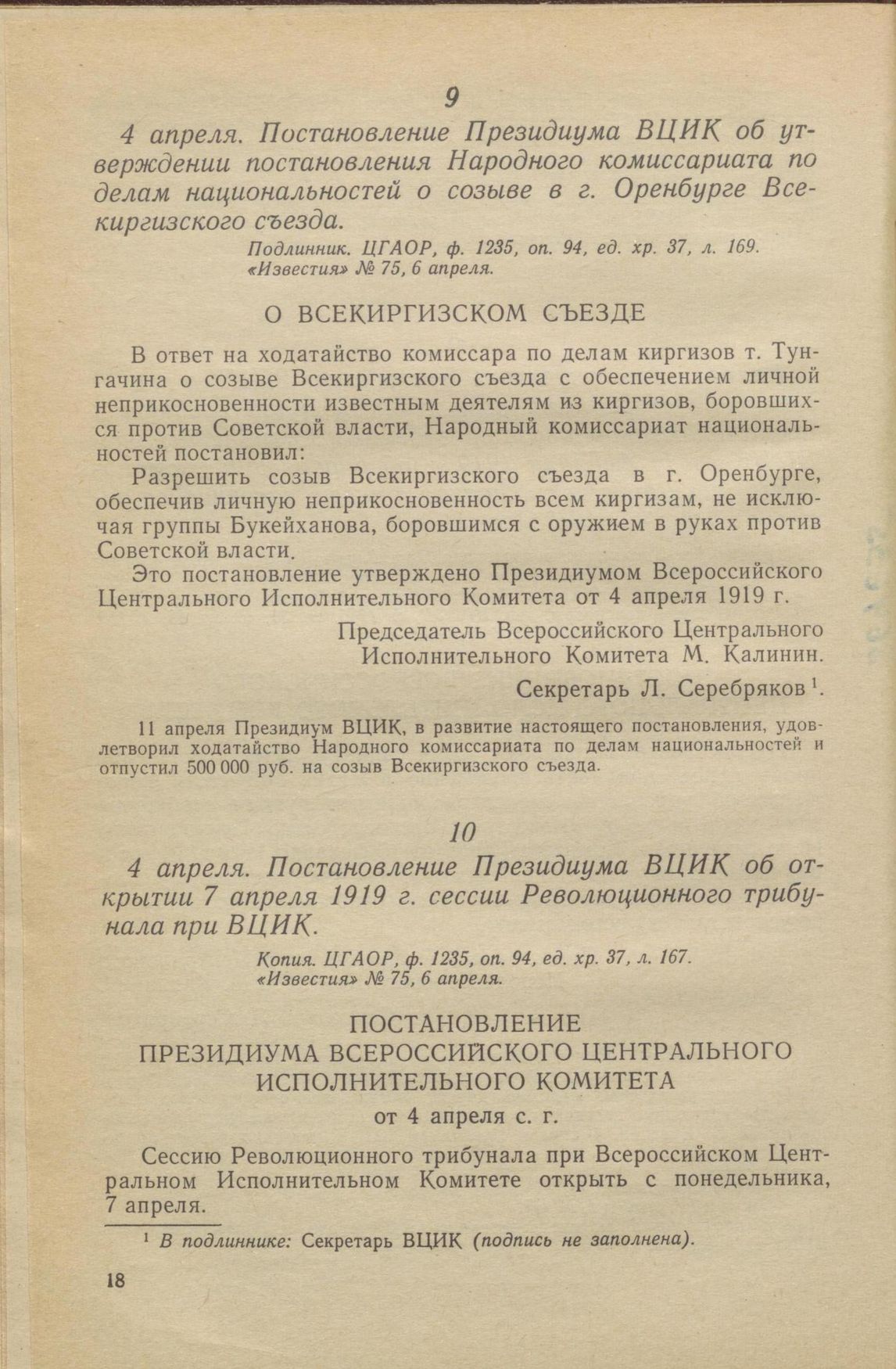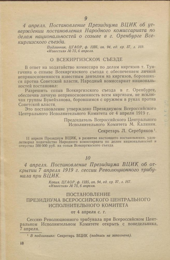 Главная Серия «Экономическая история. Документы, исследования, переводы» Декреты советской власти в 18 т. Декреты Советской власти. Т. V. 1 апреля – 31 июля 1919 г. Документы 4 апреля. Постановление Президиума ВЦИК об утверждении постановлен...