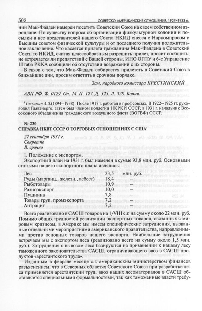 Справка НКВТ СССР о торговых отношениях с США. 27 сентября 1931 г.