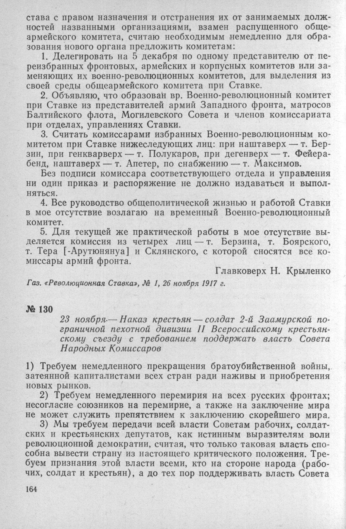 Наказ крестьян — солдат 2-й Заамурской пограничной пехотной дивизии II Всероссийскому крестьянскому съезду с требованием поддержать власть Совета Народных Комиссаров. 23 ноября 1917 г. // ЦГВИА, Ф. 2369, Оп. 1, Д. 14, Л. 121. Копия.