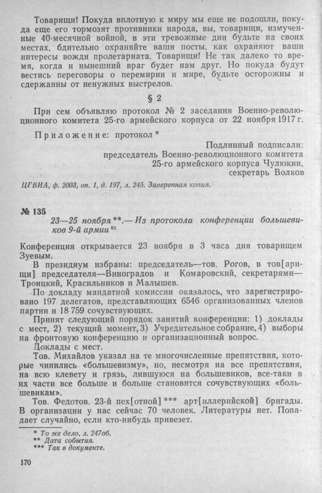 Из протокола конференции большевиков 9-й армии. 23-25 ноября 1917 г. // «Известия армейского комитета 9-й армии», № 181, 26 ноября 1917 г.