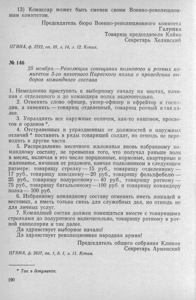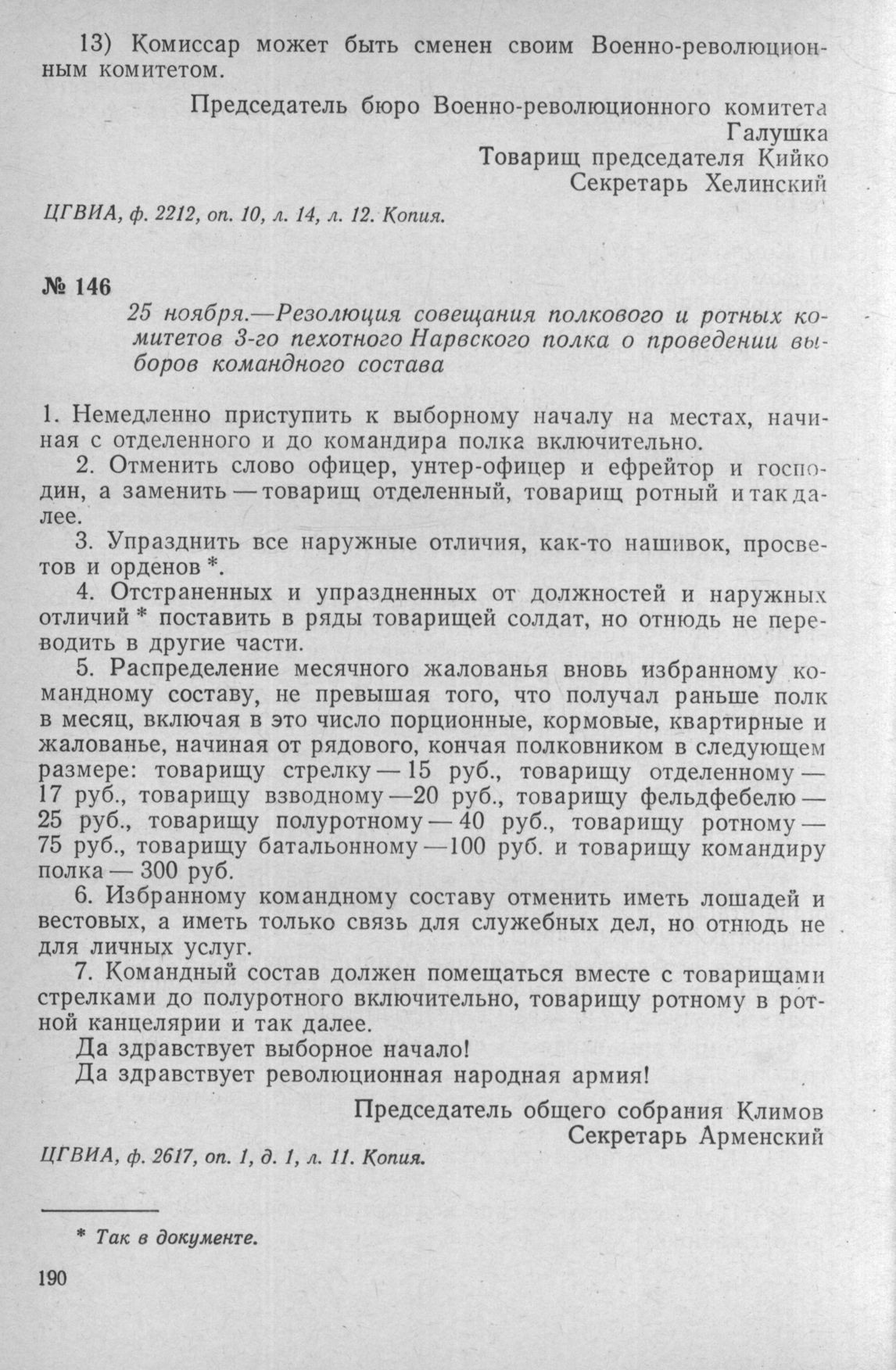 Резолюция совещания полкового и ротных комитетов 3-го пехотного Нарвского полка о проведении выборов командного состава. 25 ноября 1917 г.