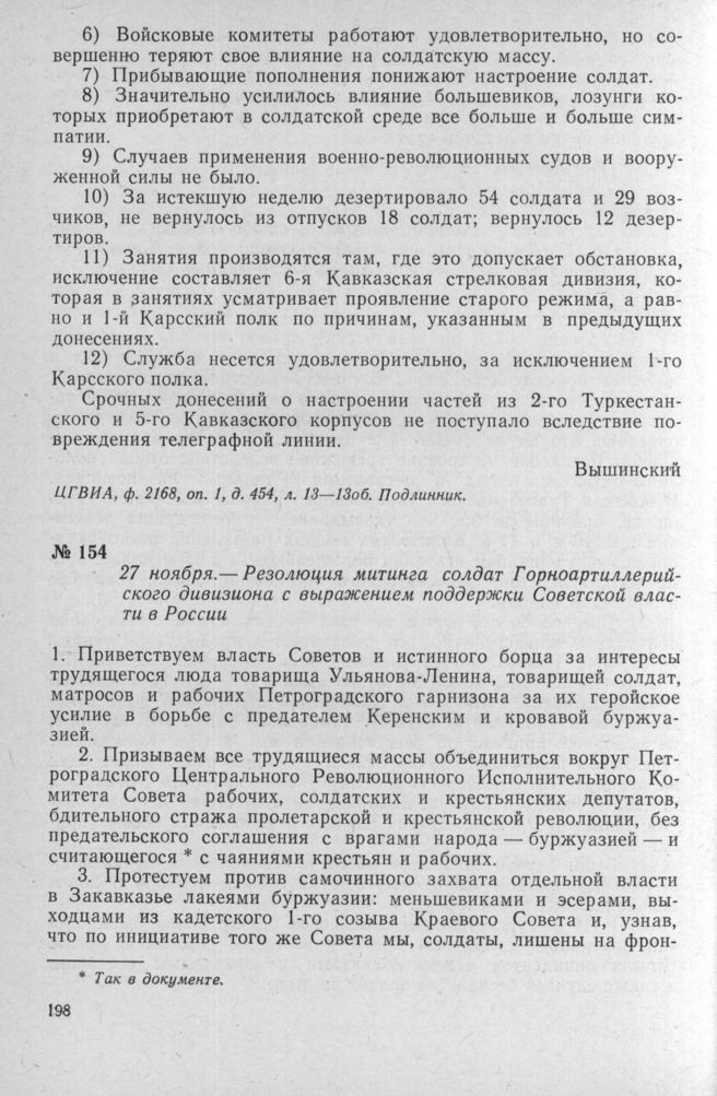 Резолюция митинга солдат Горноартиллерийского дивизиона с выражением поддержки Советской власти в России. 27 ноября 1917 г. // Газ. «Кавказский рабочий» № 217, 10 (23), декабря 1917 г.