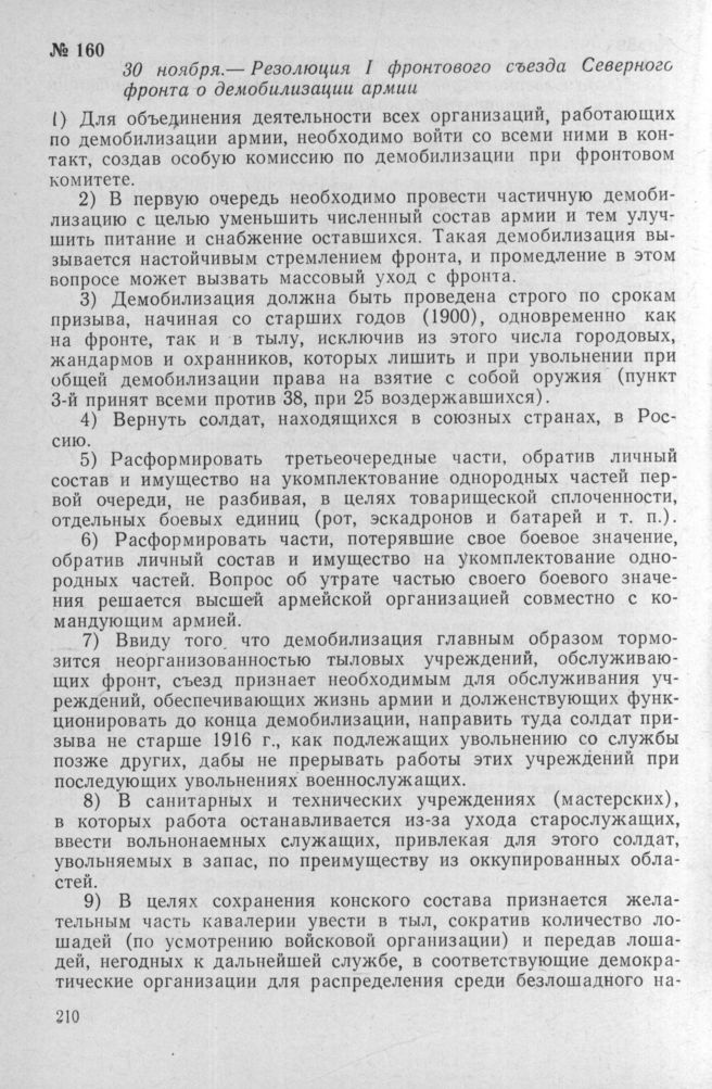 Резолюция I фронтового съезда Северного фронта о демобилизации армии. 30 ноября 1917 г. // ЦГВИА, Ф. 2031, Оп. 1, Д. 1548, Л. 2—2об. Типогр. экз.