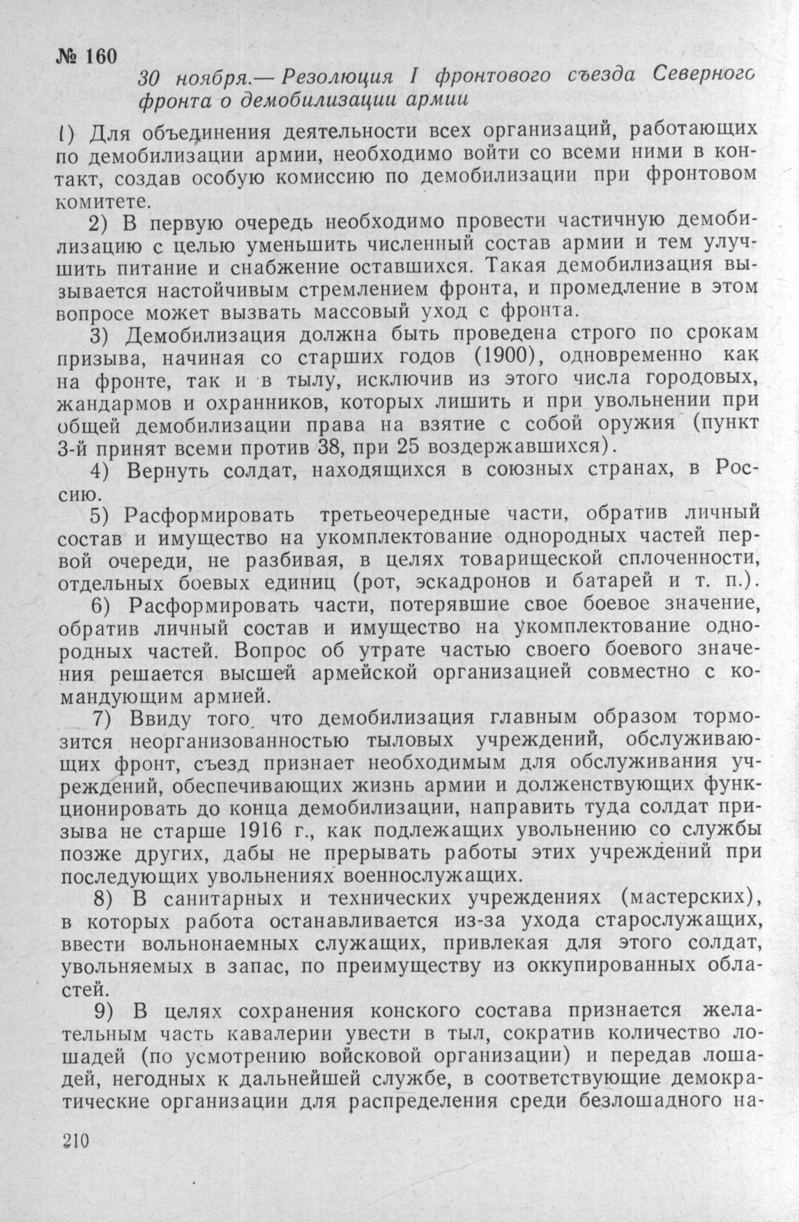 Резолюция I фронтового съезда Северного фронта о демобилизации арми...