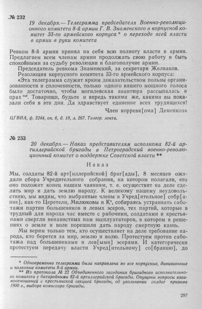 Наказ представителям исполкома 82-й артиллерийской бригады в Петроградский военно-революционный комитет о поддержке Советской власти. 20 декабря 1917 г.