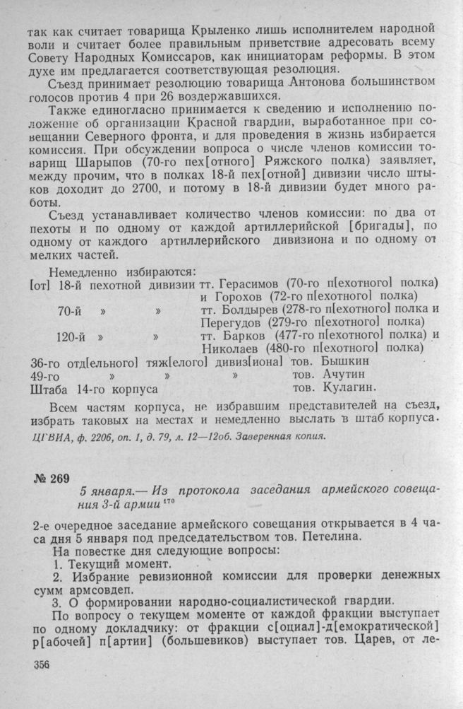 Из протокола заседания армейского совещания 3-й армии. 5 января 1918 г. // ЦГВИА, Ф. 2113, Оп. 1, Д. 1613, Лл. 11—13. Копия.