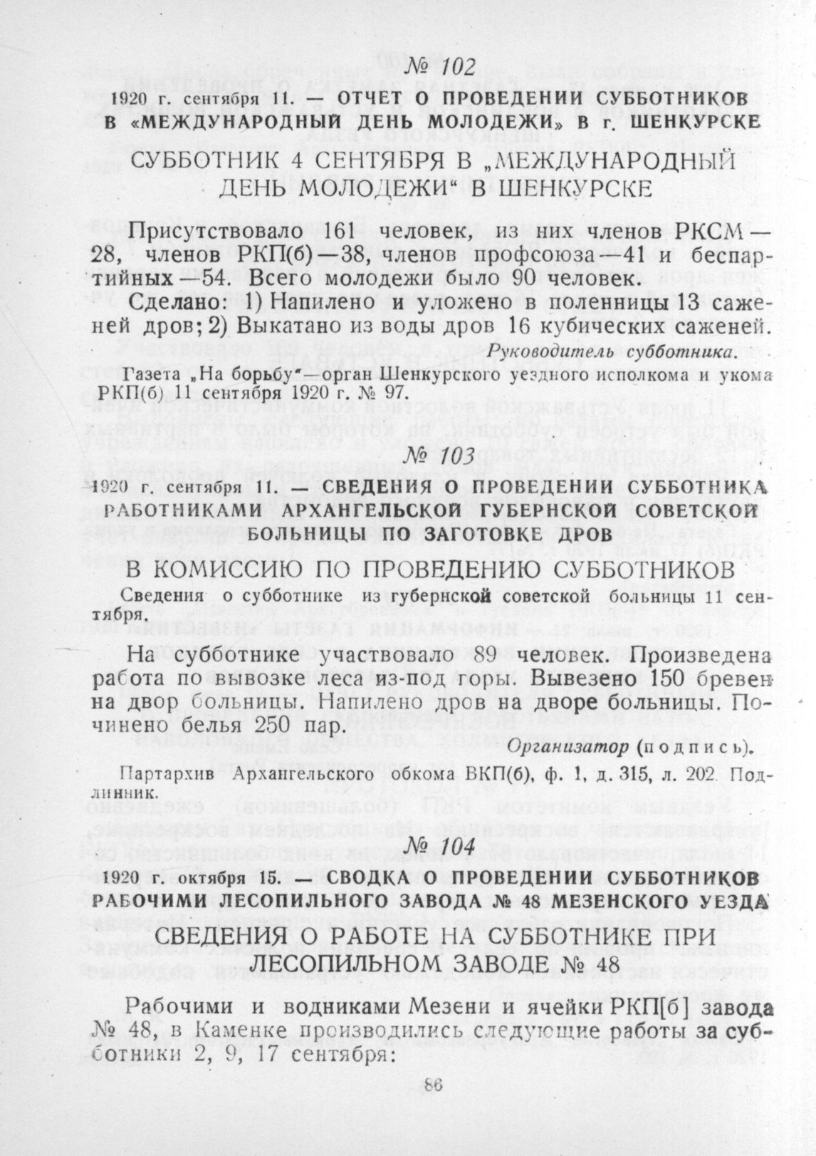 Коммунистические субботники на Севере (1919-1921 гг.): Сб. материалов и док. — Архангельск: Архангельское обл. гос. изд-во, 1950.