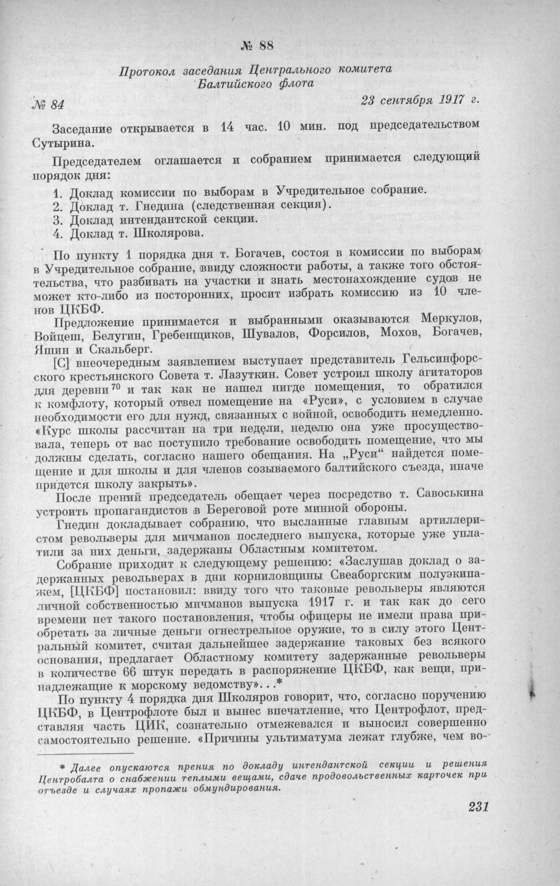 Протокол заседания Центрального комитета Балтийского флота № 84. 23 сентября 1917 г.