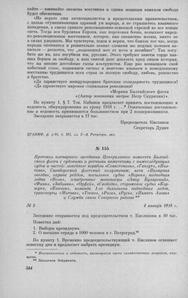 Протокол пленарного заседания Центрального комитета Балтийского флота с судовыми и ротными комитетами с нижеследующих судов и частей: линейные корабли «Севастополь», «Гангут», «Полтава», Свеаборгский флотский полуэкипаж, яхта «Полярная звезда», ох...