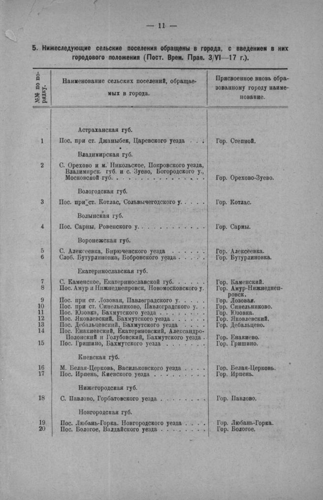 Нижеследующие сельские поселения обращены в города, с введением в них