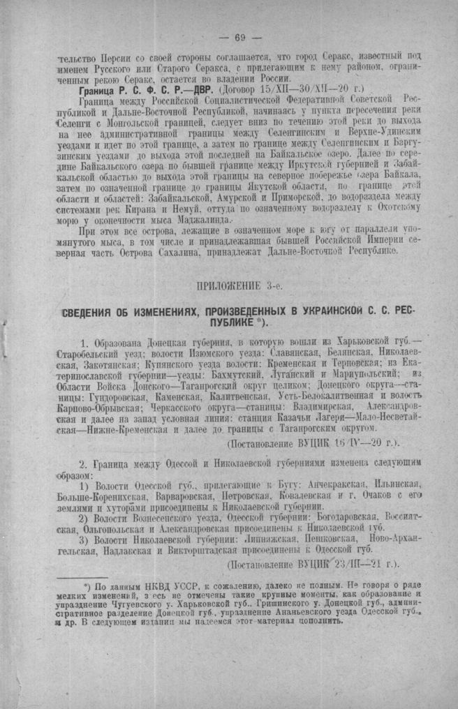 Постановления рабоче-крестьянского правительства. Приложение 3-е. Сведения об изменениях, произведенных в Украинской С.С.Республике
