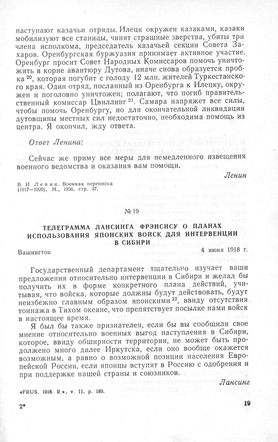 Papers Relating to the Foreign Relations of the United States. 1918. Russia. Washington. 1931, V. II. р. 189.