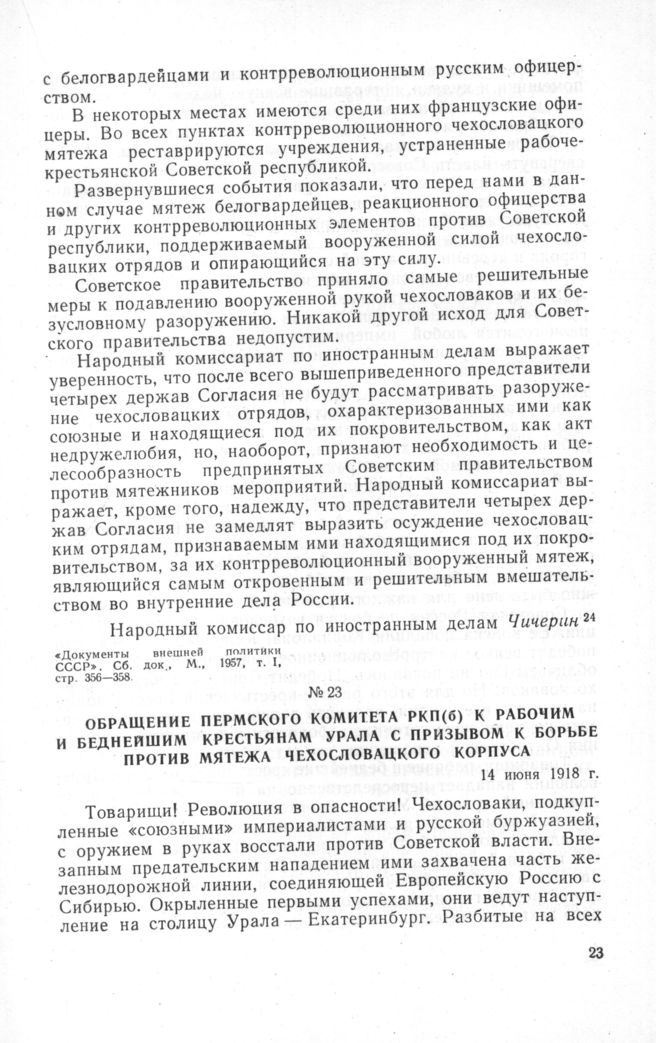 Обращение Пермского Комитета РКП(б) к рабочим и беднейшим крестьянам Урала с призывом к борьбе против мятежа Чехословацкого корпуса. 14 июня 1918 г. // Партархив Свердловского обкома КПСС, ф. 4, оп. 1, д. 3, л. 126. Копия.