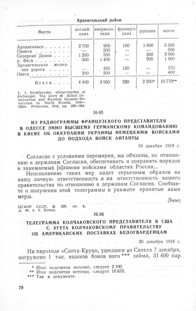 Телеграмма колчаковского представителя в США С. Угета колчаковскому правительству об американских поставках белогвардейцам. 20 декабря 1918 г. // ЦГАОР СССР, ф. 200, оп. 4, д. 62, л. 53. Копия.