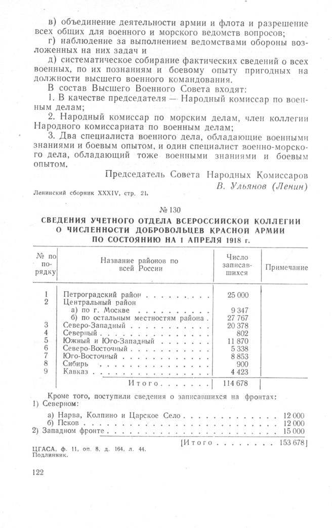 Сведения Учетного отдела Всероссийской Коллегии о численности добровольцев Красной армии по состоянию на 1 апреля 1918 г. // ЦГАСА, ф. 11, оп. 8, д. 164, л. 44. Подлинник.