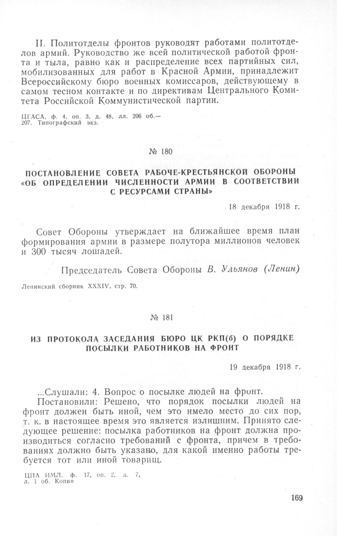 Из протокола заседания Бюро ЦК РКП(б) о порядке посылки работников на фронт. 19 декабря 1918 г. // ЦПА ИМЛ, ф. 17, оп. 2, д. 7, л. 1 об. Копия.