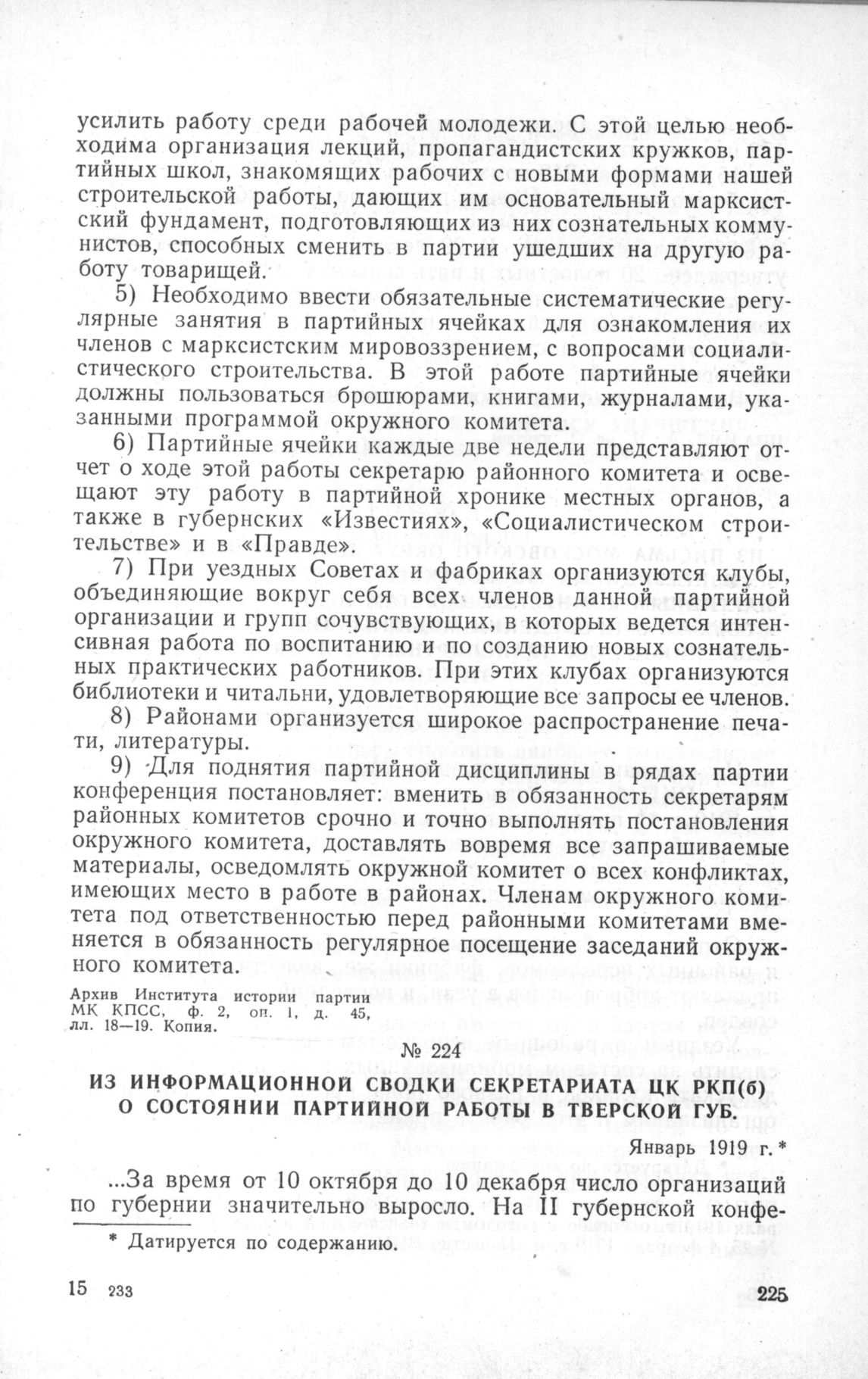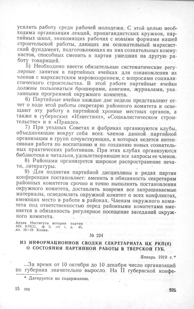 Из информационной сводки секретариата ЦК РКП(б) о состоянии партийной работы в Тверской губ. Январь 1919 г. // ЦПА ИМЛ, ф. 17, оп. 1, информ. отд., д. 40, л. 2. Копия.