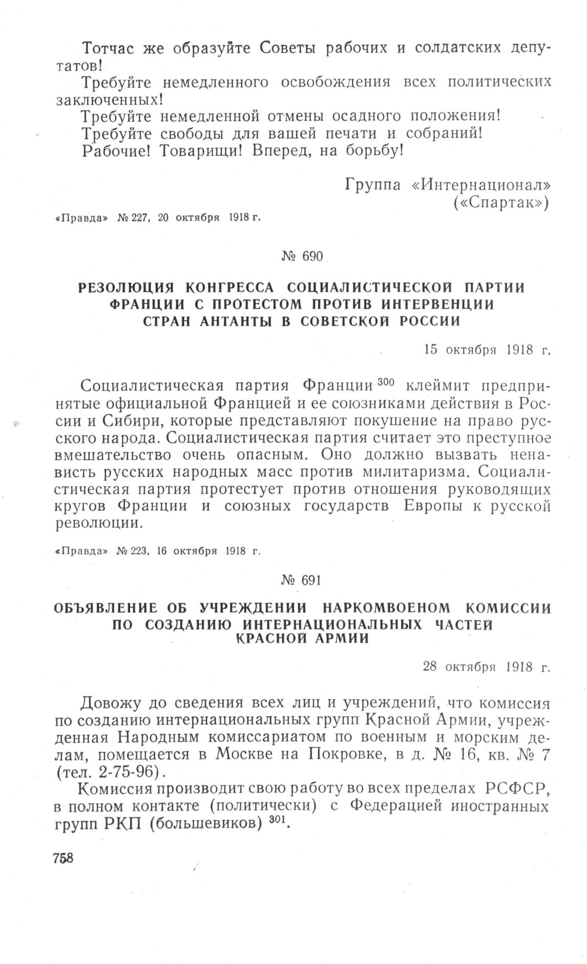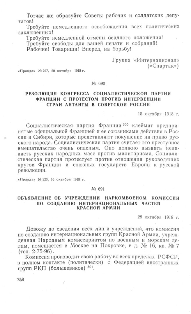 Объявление об учреждении Наркомвоеном комиссии по созданию интернациональных частей Красной армии. 28 октября 1918 г.