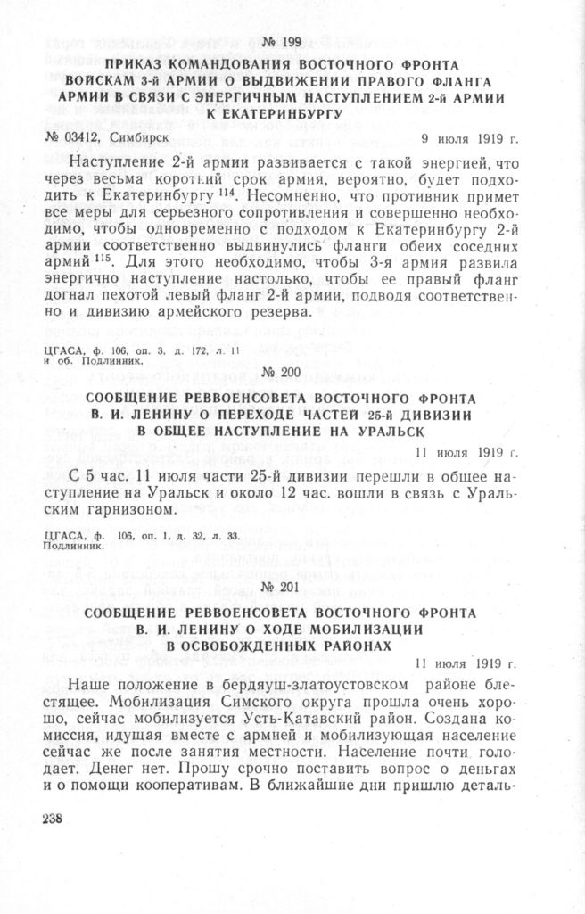 Сообщение Реввоенсовета Восточного фронта В.И. Ленину о переходе частей 25-й дивизии в общее наступление на Уральск. 11 июля 1919 г.